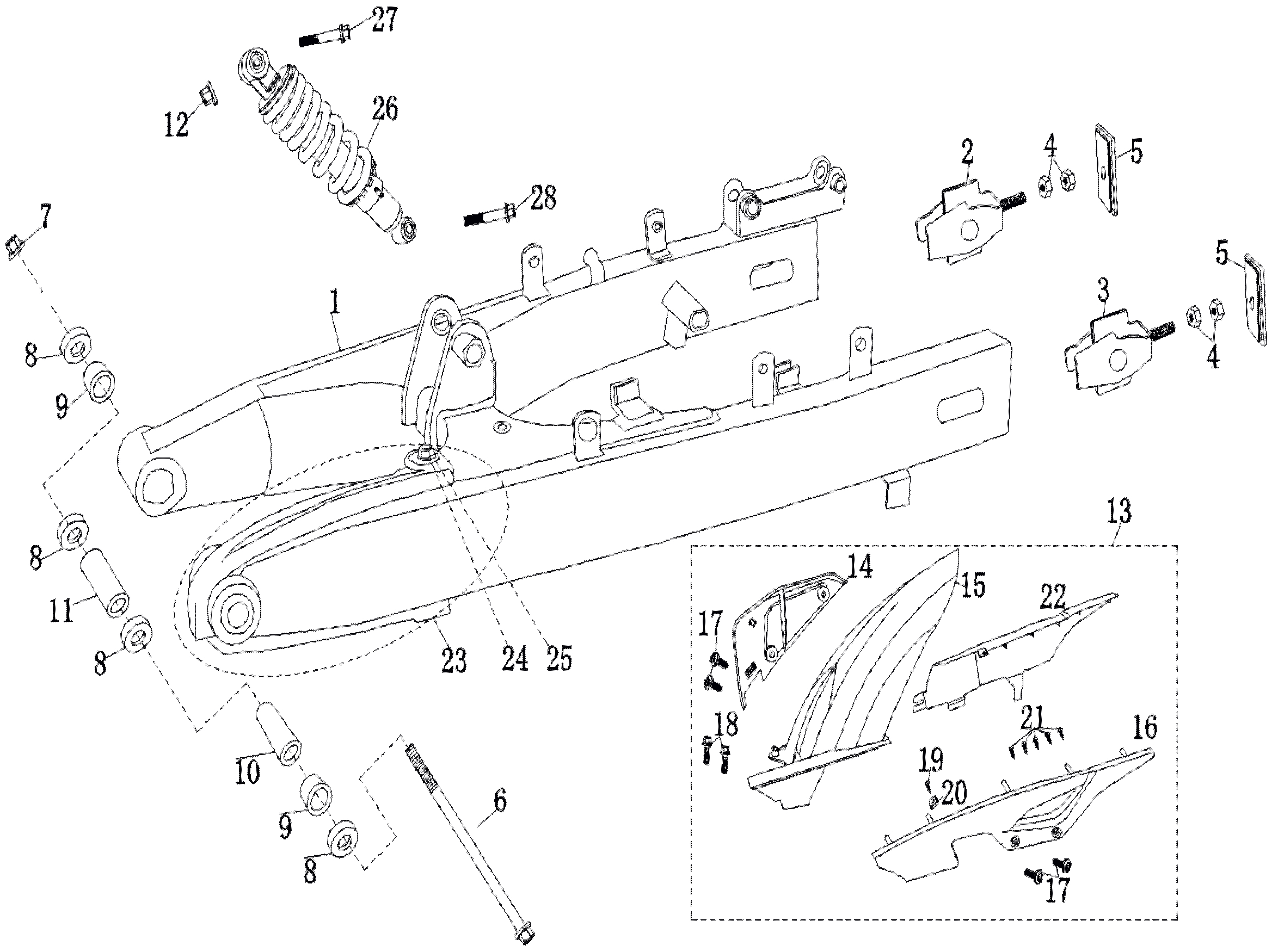 Náhradní díly CAPIRELLI ND stroje Capirelli ND Diablo 04 Zadní vidlice s tlumicem