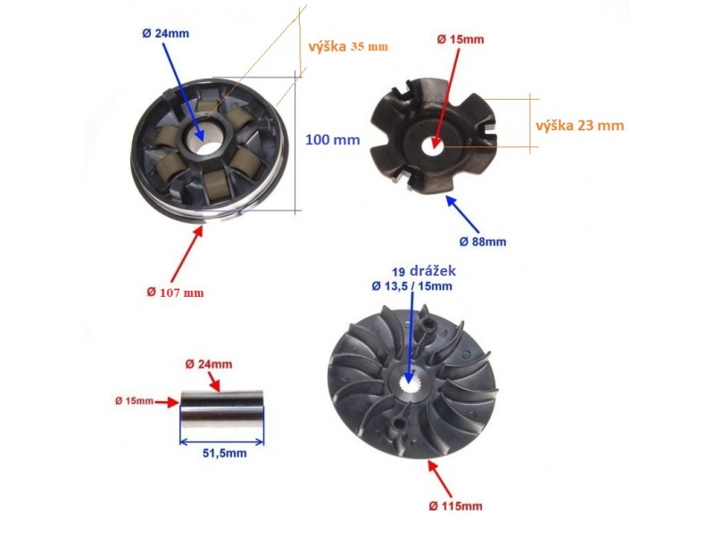 Náhradní díly CAPIRELLI ND stroje Capirelli ND motor 125ccm QMI 152 (125ccm) 11 Variátor 125ccm